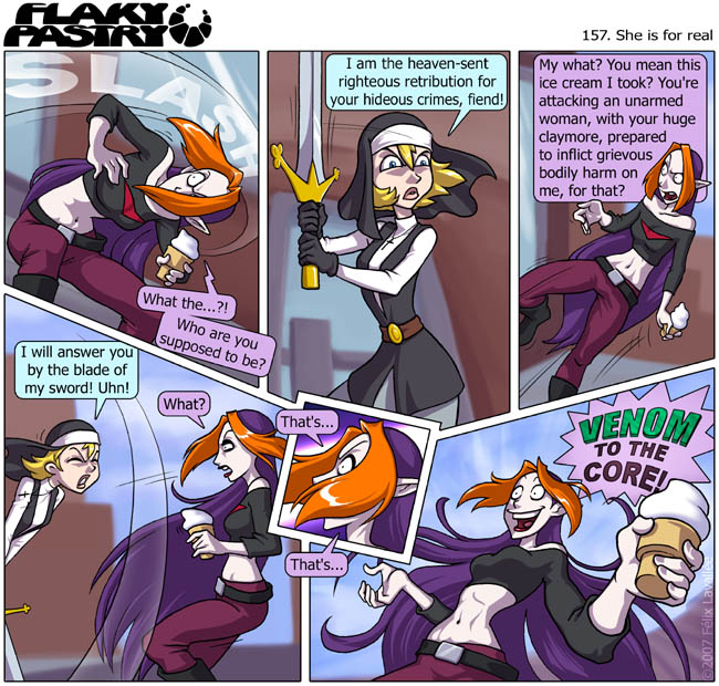 This week, on Flaky pastry... HEY you know what's super not fun? Migraines! You know what's super fun? When a migraine goes away! ... Nothing to do with the content of the comic, just with the process of getting to you, the reader.