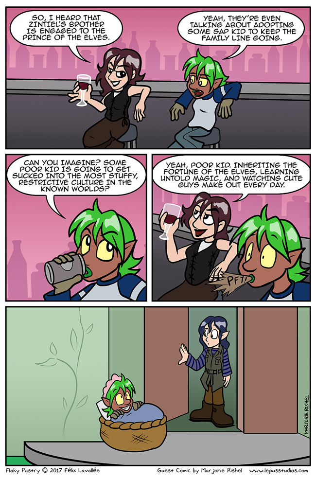 This week, on Flaky pastry... we have a guest comic! It comes to us from Marjorie Rishel of Lepus Studios. Thank you! She does the webcomic Draconis Wicked, which I encourage you to check out!