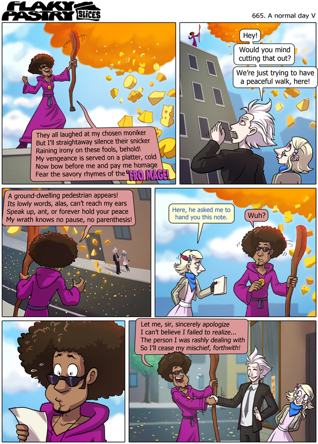 Comic updated! This week, on Flaky pastry... if your theory to explain cheese falling from the sky was 'a wizard did it' then... congratulations! You were right.