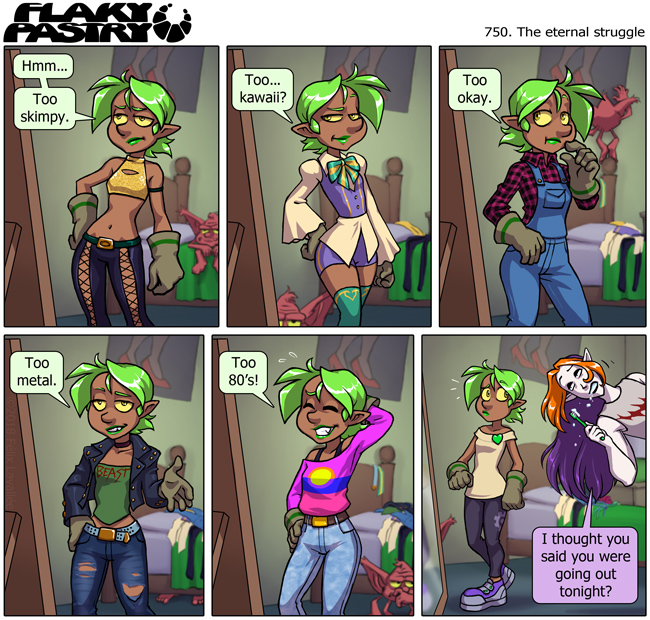 Updated! This week, on Flaky pastry... happy new year! Hope you're ready for it. Also page 750? That's some kind of milestone, I think! 3/4 of the way to 1000... Some things for you to try this year if you haven't yet! Like the Flaky Pastry Facebook page! Come chat on the Flaky Pastry Discord channel! Check out the Flaky Pastry Wiki, and contribute if you like! Vote for Flaky Pastry on TopWebcomics? I also have a deviantArt gallery, in case you didn't know!