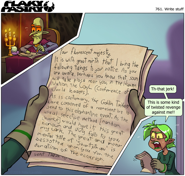 As is coztumary, the Goblin Tribes have convened of a representive to send to this elephantine event. As the usual selective method [random chance] would have it, this great honour and duty falls to you, my cork. The great and monumental title of 'Shortstraw' is bessotted upon you for the duration of the occasion.