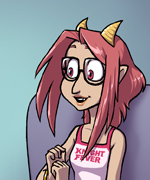 —Dragon—FrownshireFamily— Or Minnie, as she prefers to be called. Sir Manfred's visiting niece is a young dragon girl who (scandal!) kind of prefers to stay in her (not-quite-perfect) human form. She is fascinated with bipeds and their way of life, but still has a lot to learn.