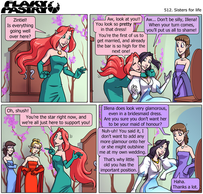 Comic updated! This week, on Flaky Pastry... a rainbow of bridesmaids! Ribbit, ribbit.