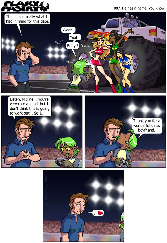 Haha, it occurs to me now that people who just read this title without having seen this week's comic might think it refers to the neighbour! But no. He doesn't have a name. Haha, but seriously, the title refers to what goes on in the comic. Just read it!